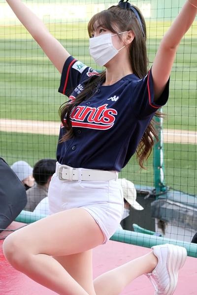 유니폼 흰반바지 머리에 리본묶은 안지현 치어리더