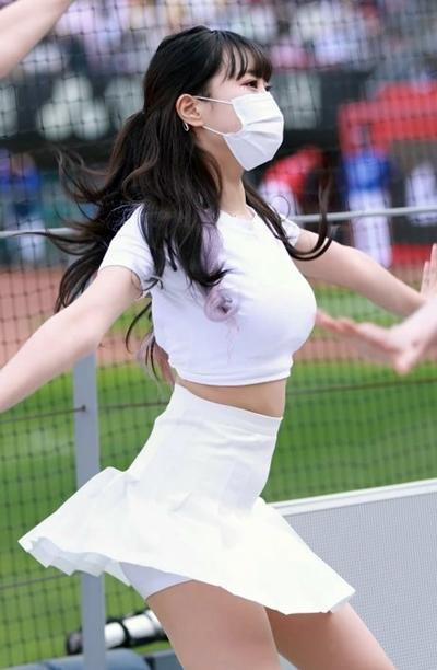 흰 크롭티 테니스 치마 치어리더 변하율