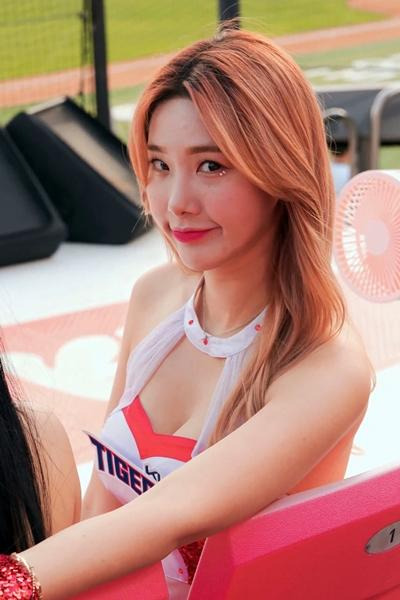 마스크 벗은 김현지 치어리더