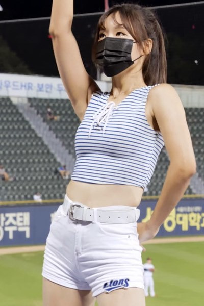 타이트 줄무늬 민소매 요망한 허리돌림 최홍라 치어리더