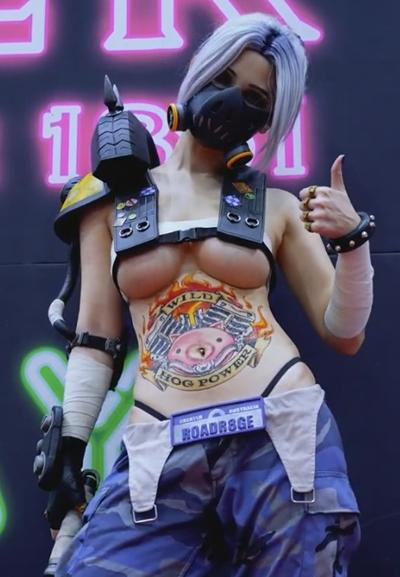 마이부 로드호그 여체화 코스프레 가슴 노출