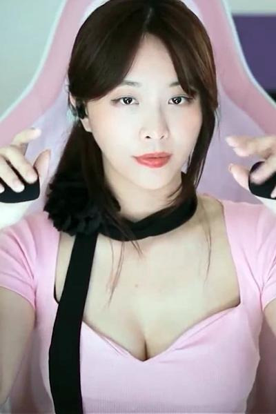 BJ 미모 ASMR 핑크 티셔츠 가슴골