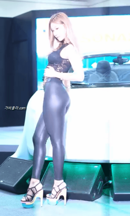 레이싱모델 지연 검정 가죽 레깅스 몸매