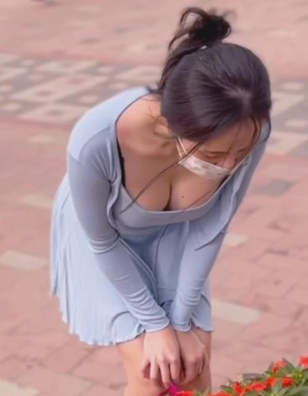 바닷가에 나타난 미씨룩 유튜버 워니 가슴골