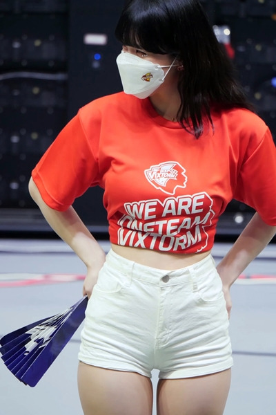 빨간 티셔츠 흰 반바지 골반 이다혜 치어리더
