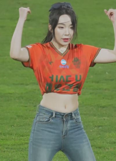 접은티 청바지핏 배꼽 노출 한서희 치어리더