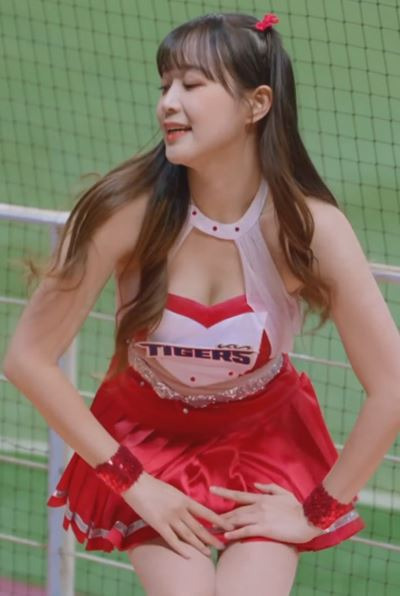 홀터넥 민소매 가슴골 변하율 치어리더