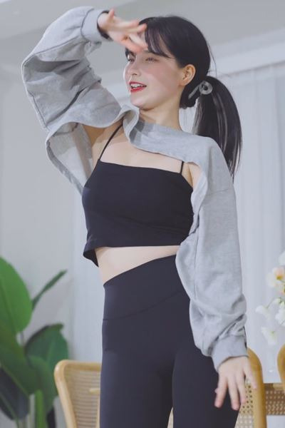 블랙 끈 민소매 레깅스 골반 핏 이다현