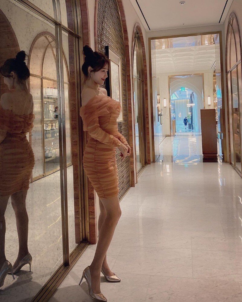 오또맘 살구색 오프숄더 원피스