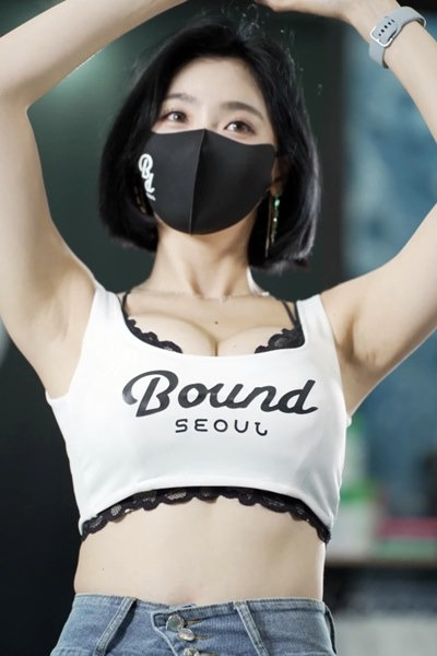 모델 남소라 윗가슴 크롭 민소매 레이스 달린 블랙 브라