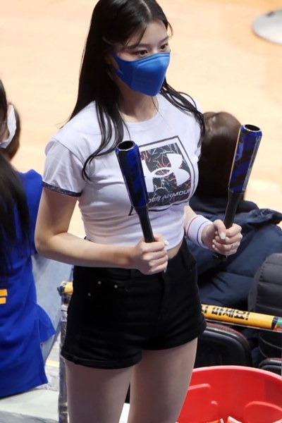 이예빈 치어리더 타이트한 흰티셔츠 블랙 반바지