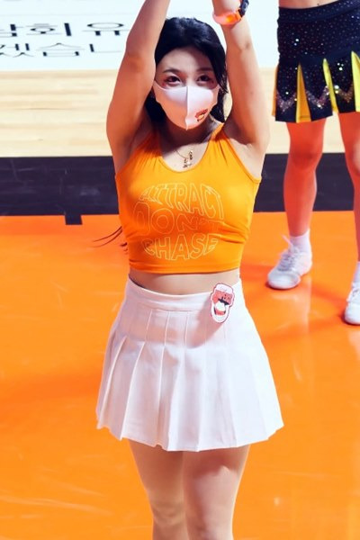 주황 민소매 가슴 무브먼트 조예린 치어리더