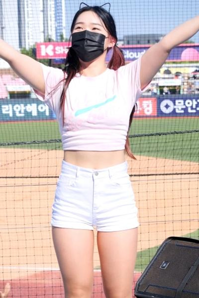 연핑크 크롭티 흰반바지 류혜민 치어리더