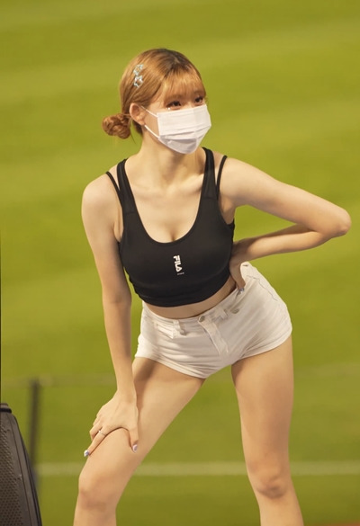 크롭 민소매 타이트한 흰 반바지 안혜지 치어리더