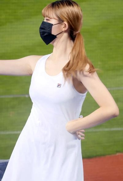 얇은 민소매 흰 원피스 안혜지 치어리더