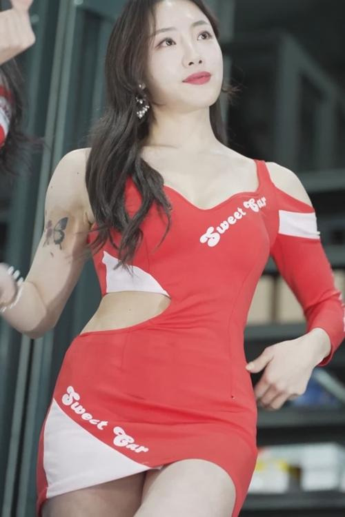 타이트한 레드 원피스 모델 송이