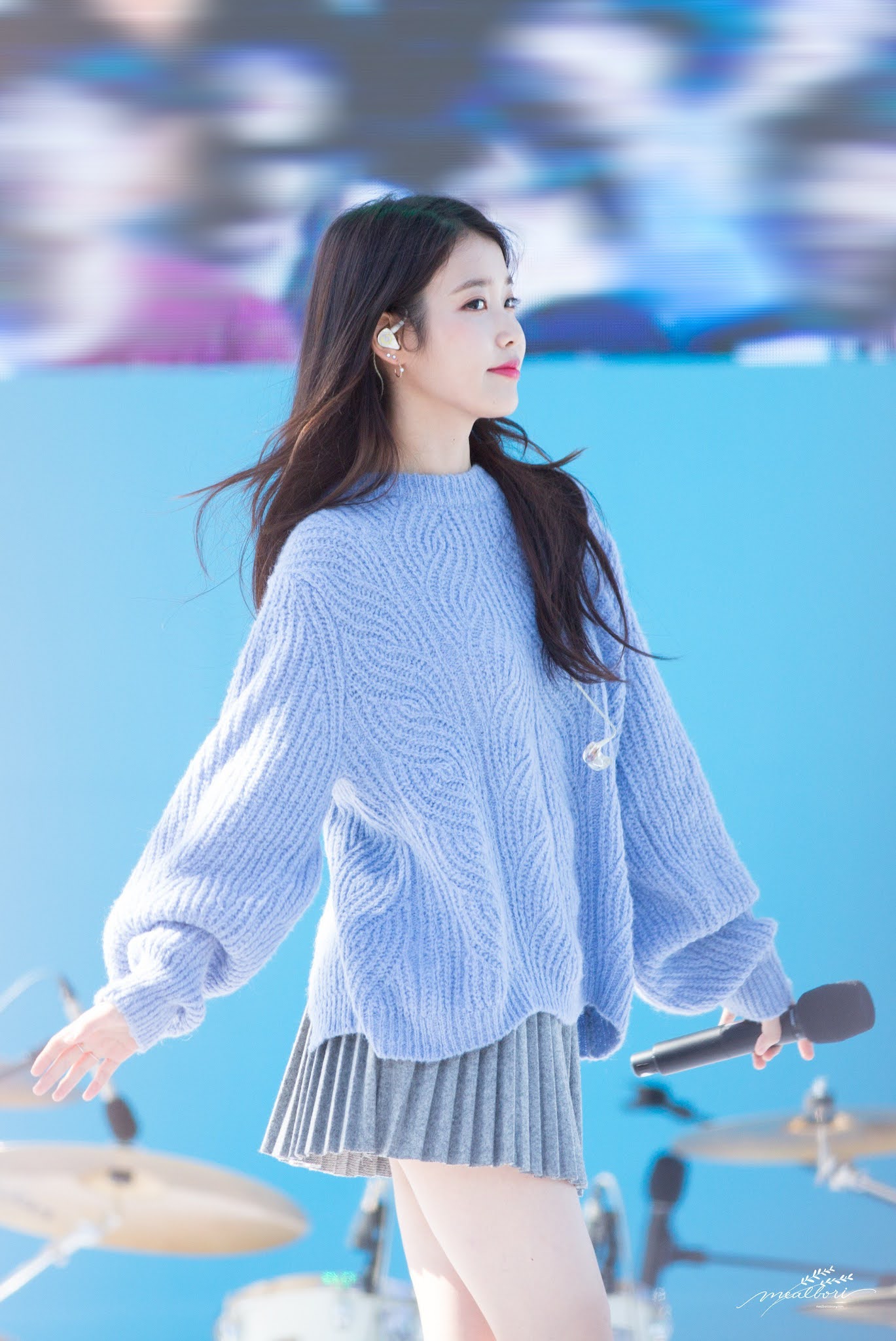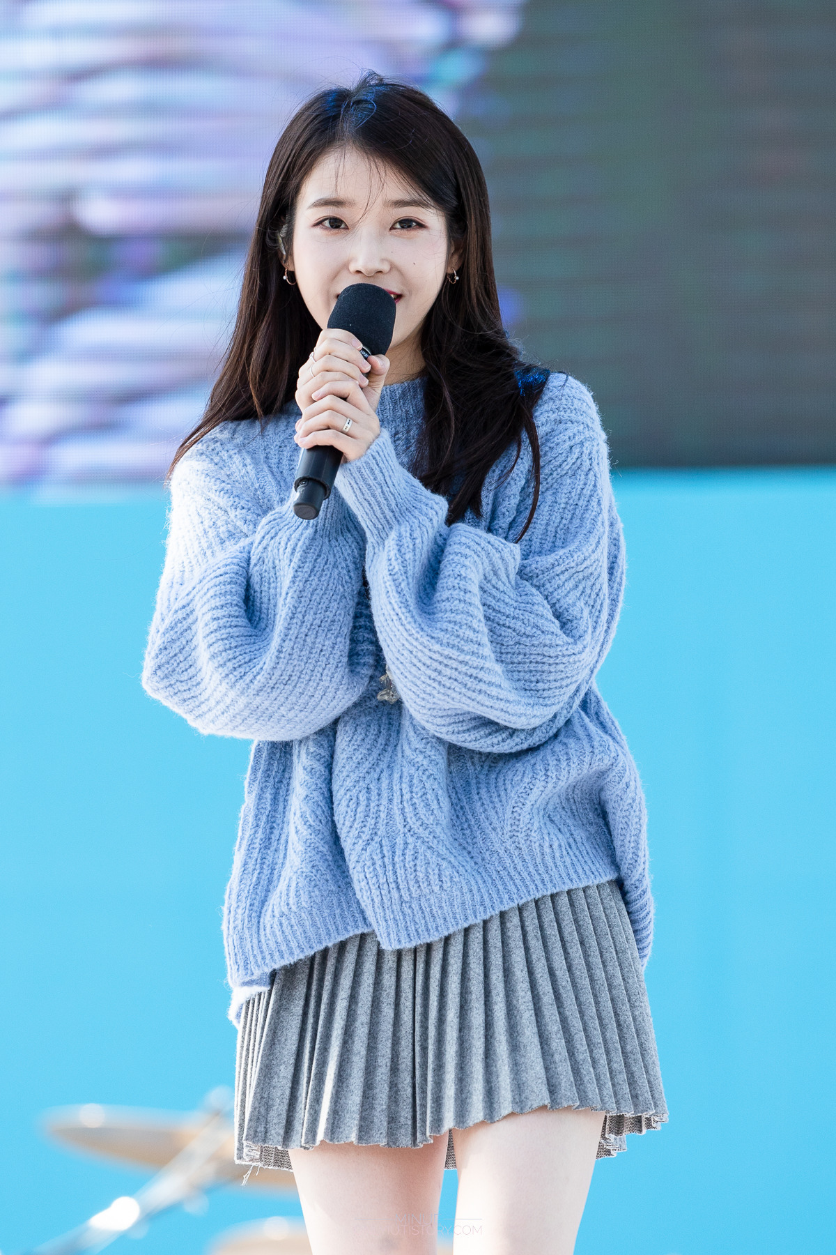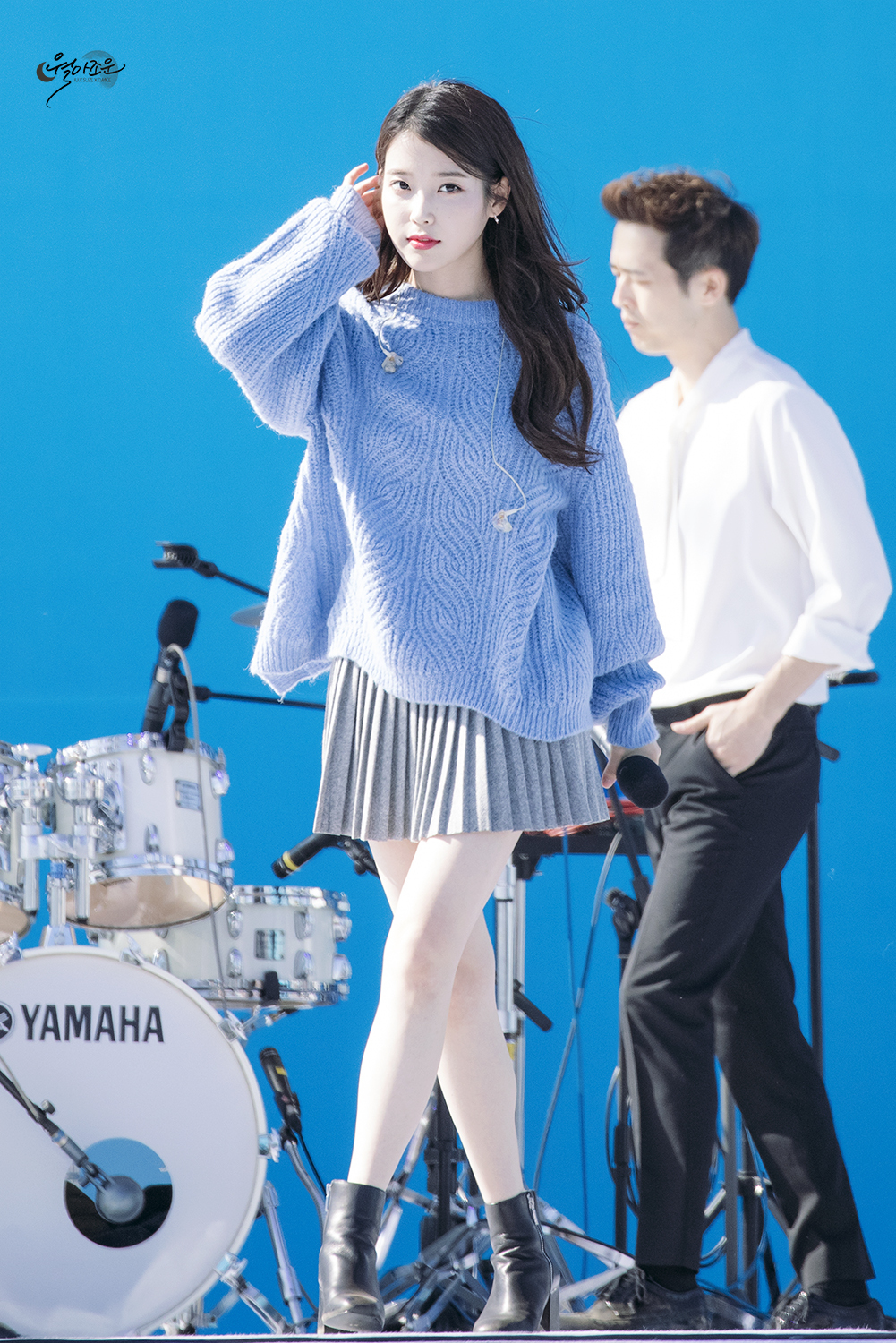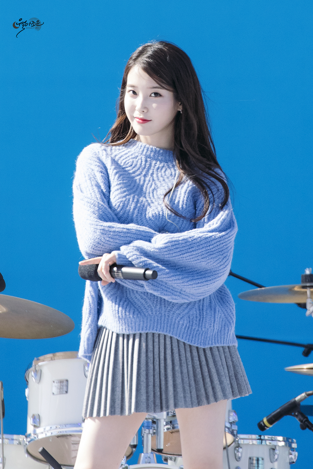 레전드였던 회색 주름치마 아이유 뽀얀 각선미