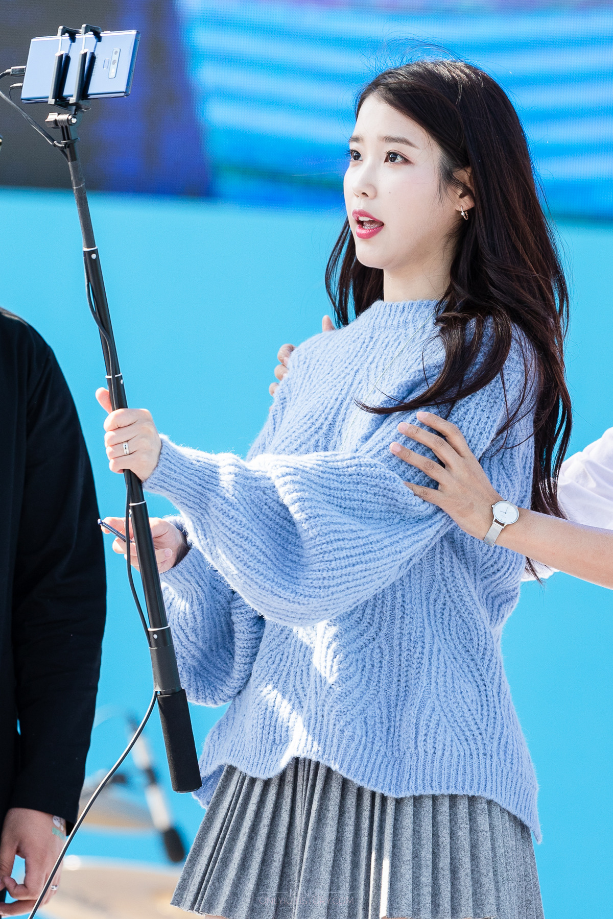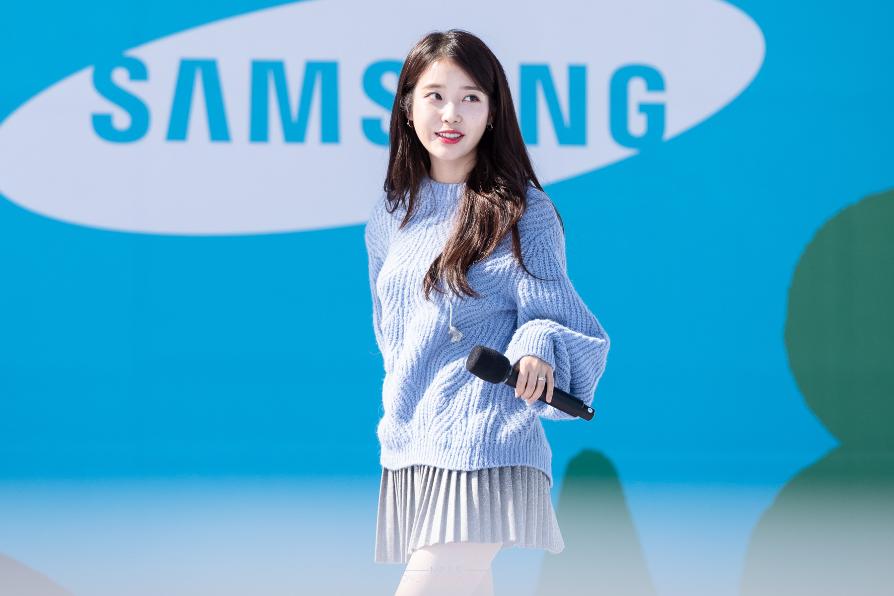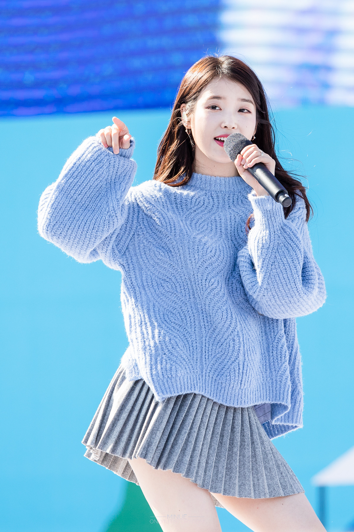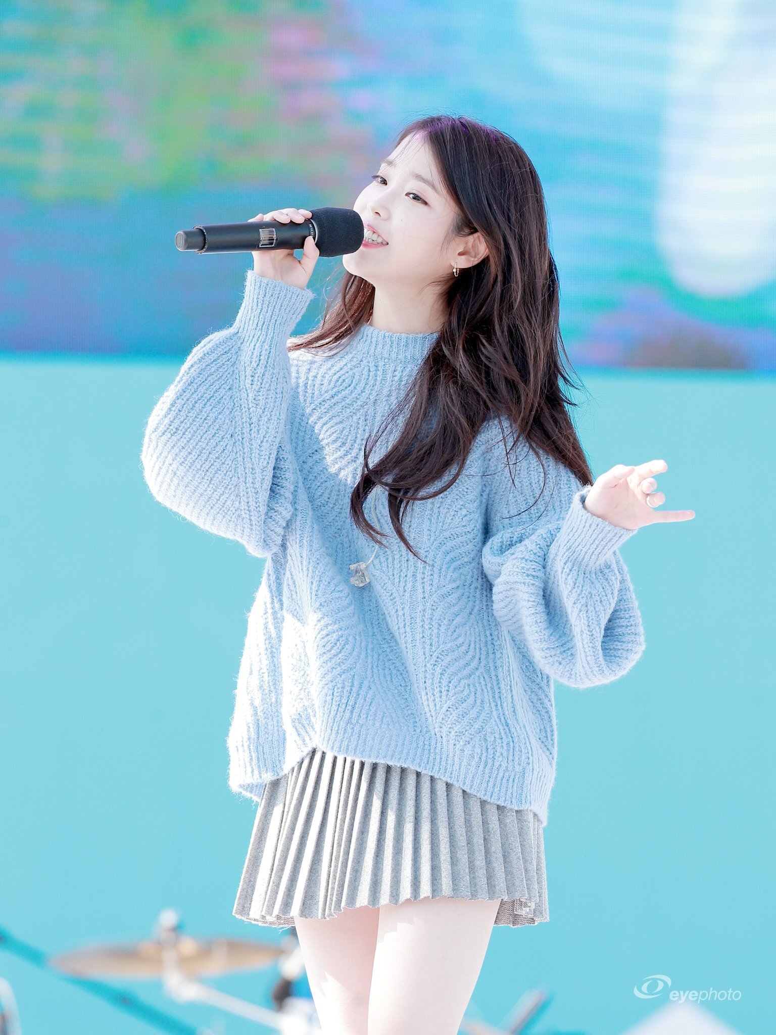 레전드였던 회색 주름치마 아이유 뽀얀 각선미
