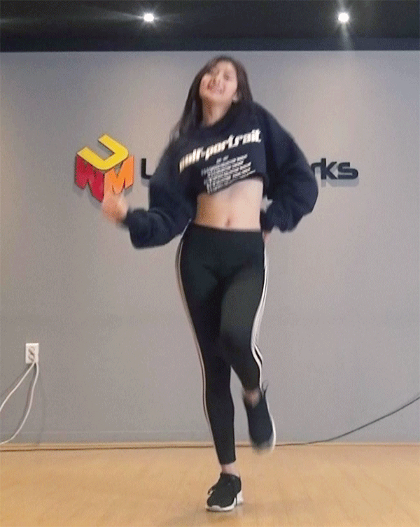 김민주 잘록한 복근 검정 레깅스 핏