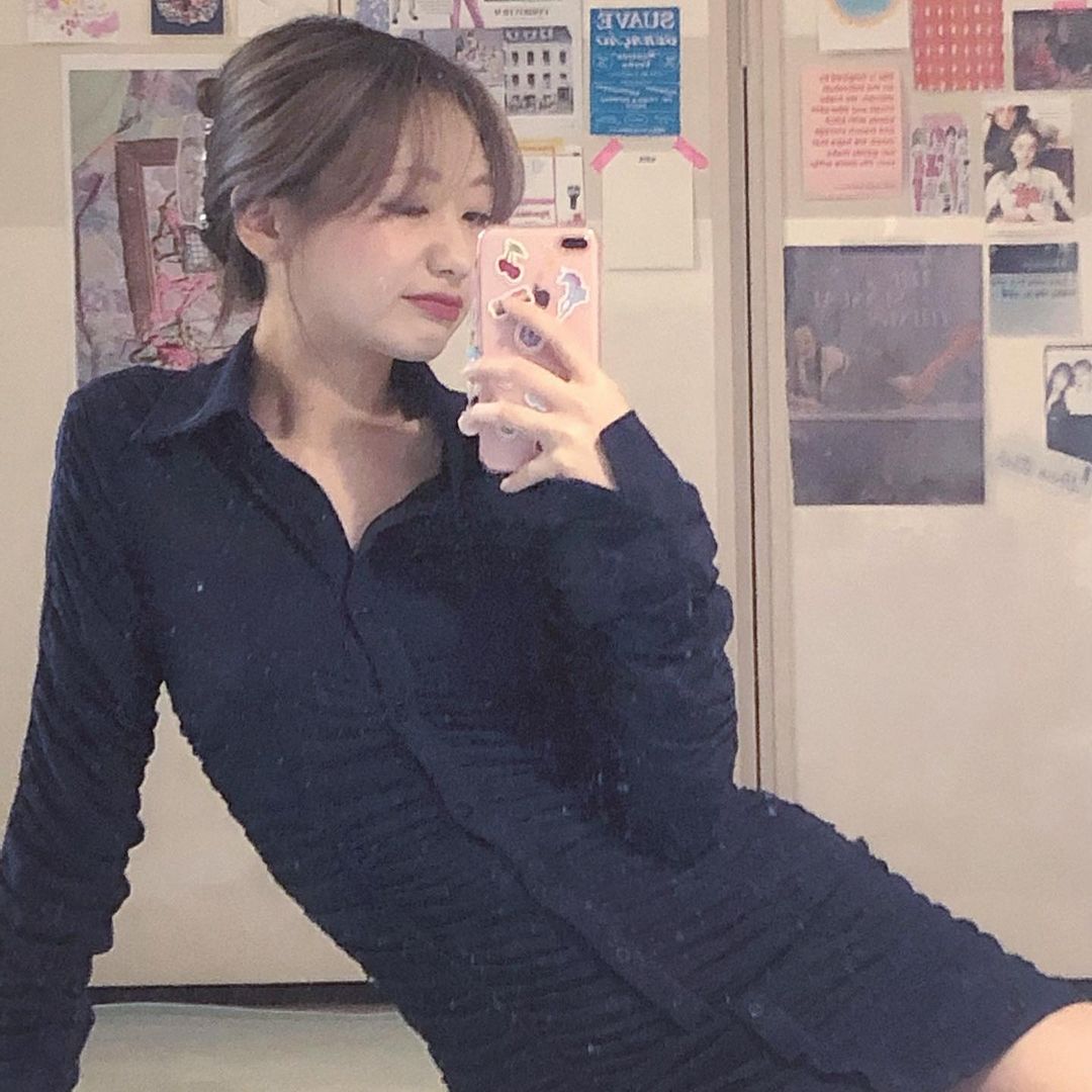 옆으로 기댄 자세로 셀카찍는 러블리즈 수정
