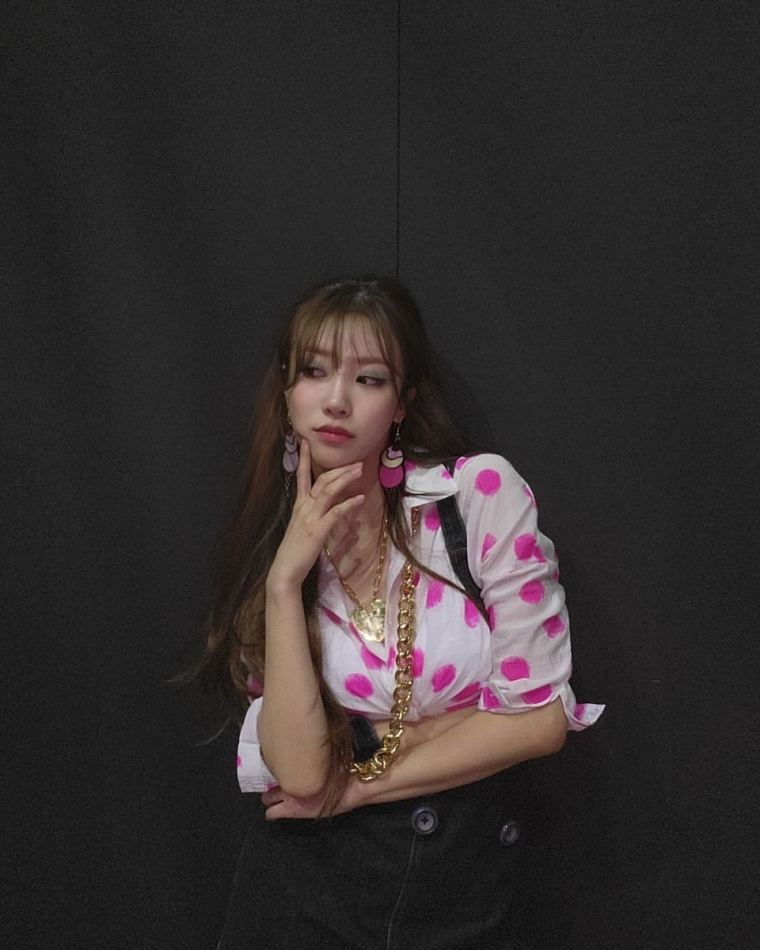 핑크 땡땡이 셔츠 이효리룩 봉긋한 이미주