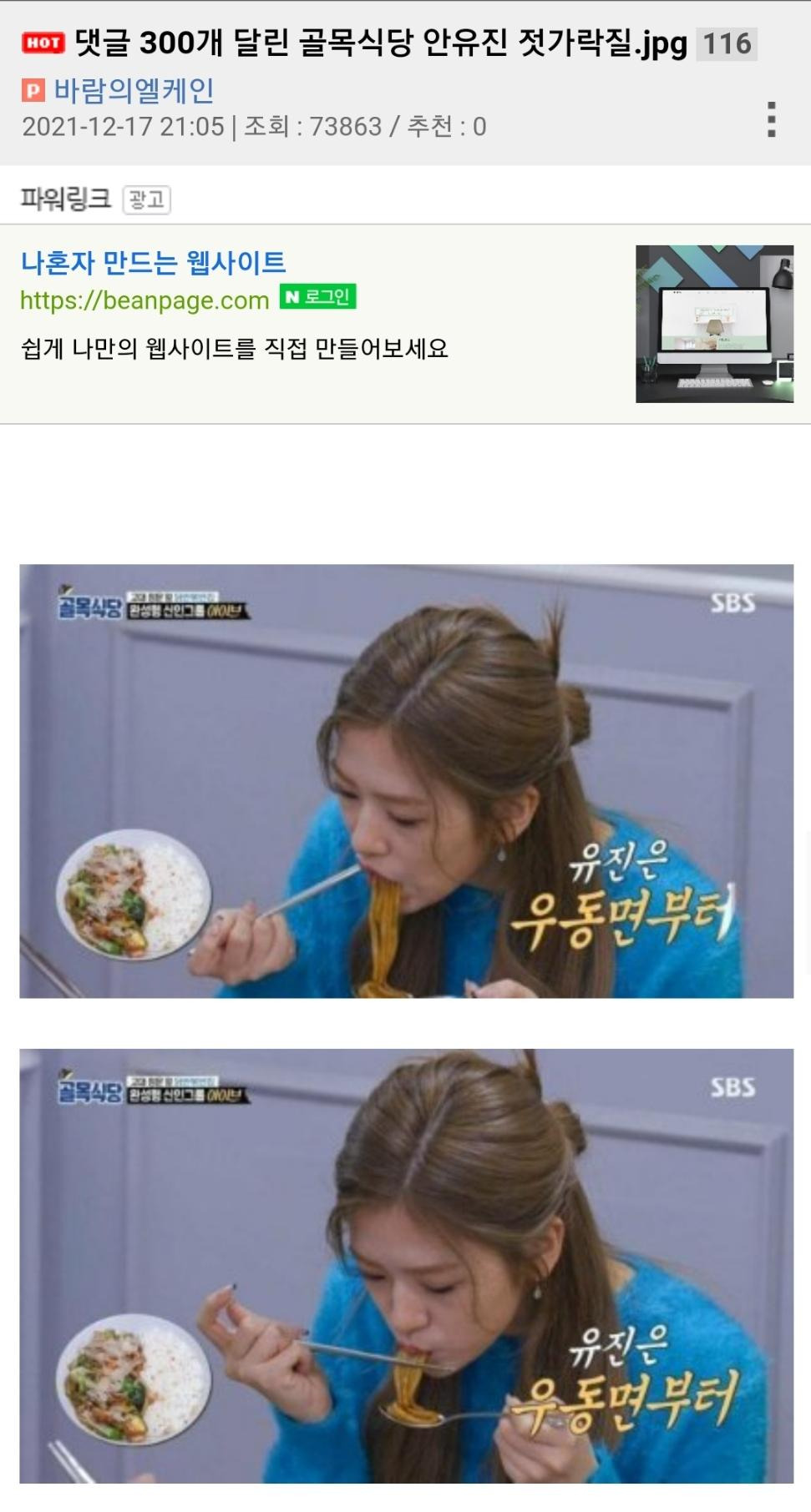 댓글 300개 달린 골목식당 안유진 젓가락질.jpg