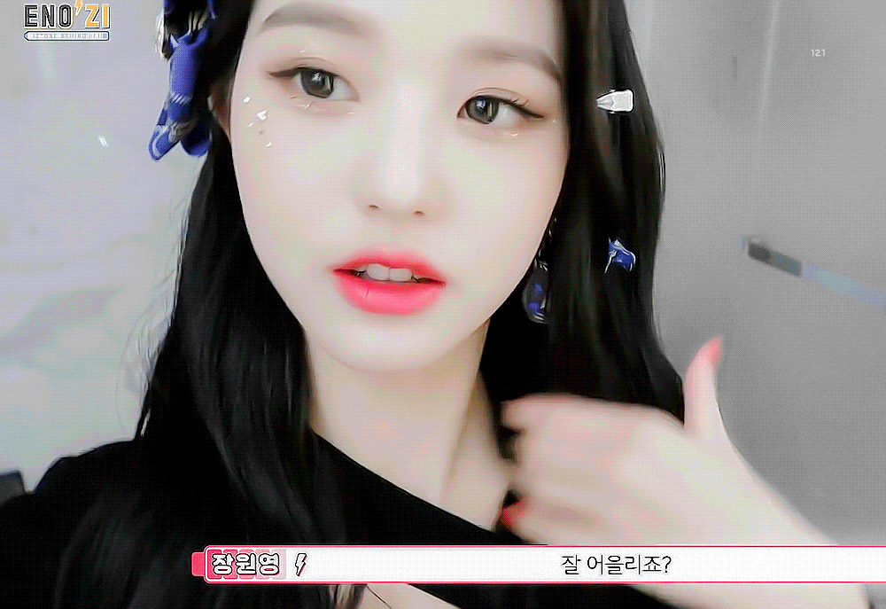 아이즈원> 알사탕 귀에 달고 나온 장원영