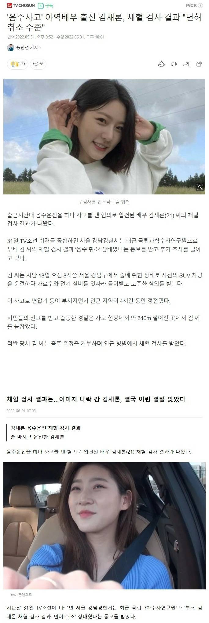 채혈 검사 결과 나온 김새론