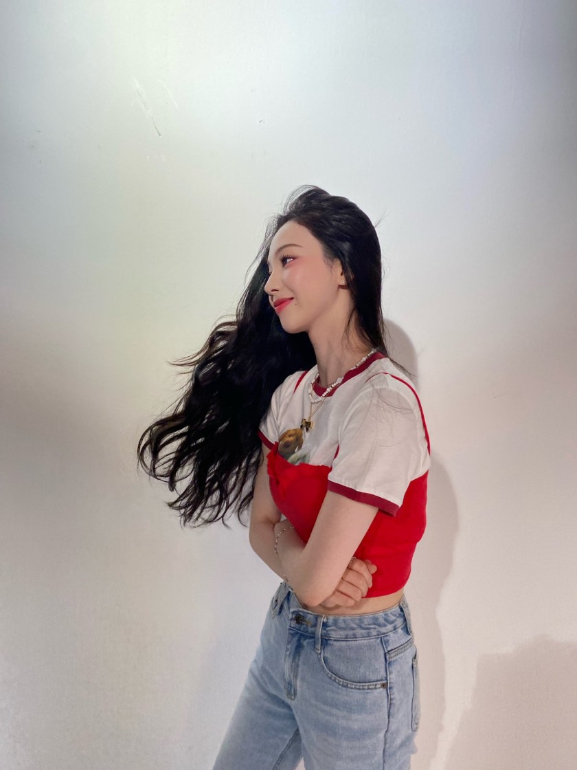머릿결 만지는 에스파 카리나