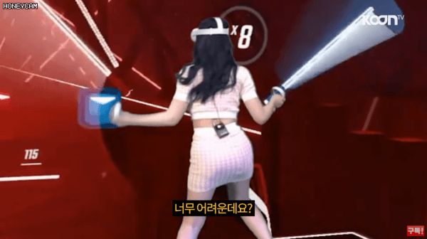 VR 컨트롤러를 광선검 처럼 들고 다가 오는 노트를 썰어버리는 게임