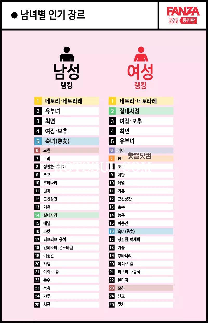 남녀별 인기 장르