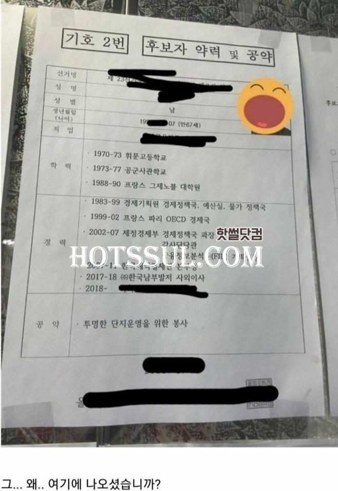 어느 아파트 동대표 지원자의 경력 ㅋ