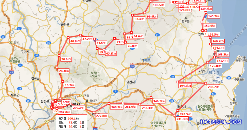 대구->경주->포항->영덕->청송->대구