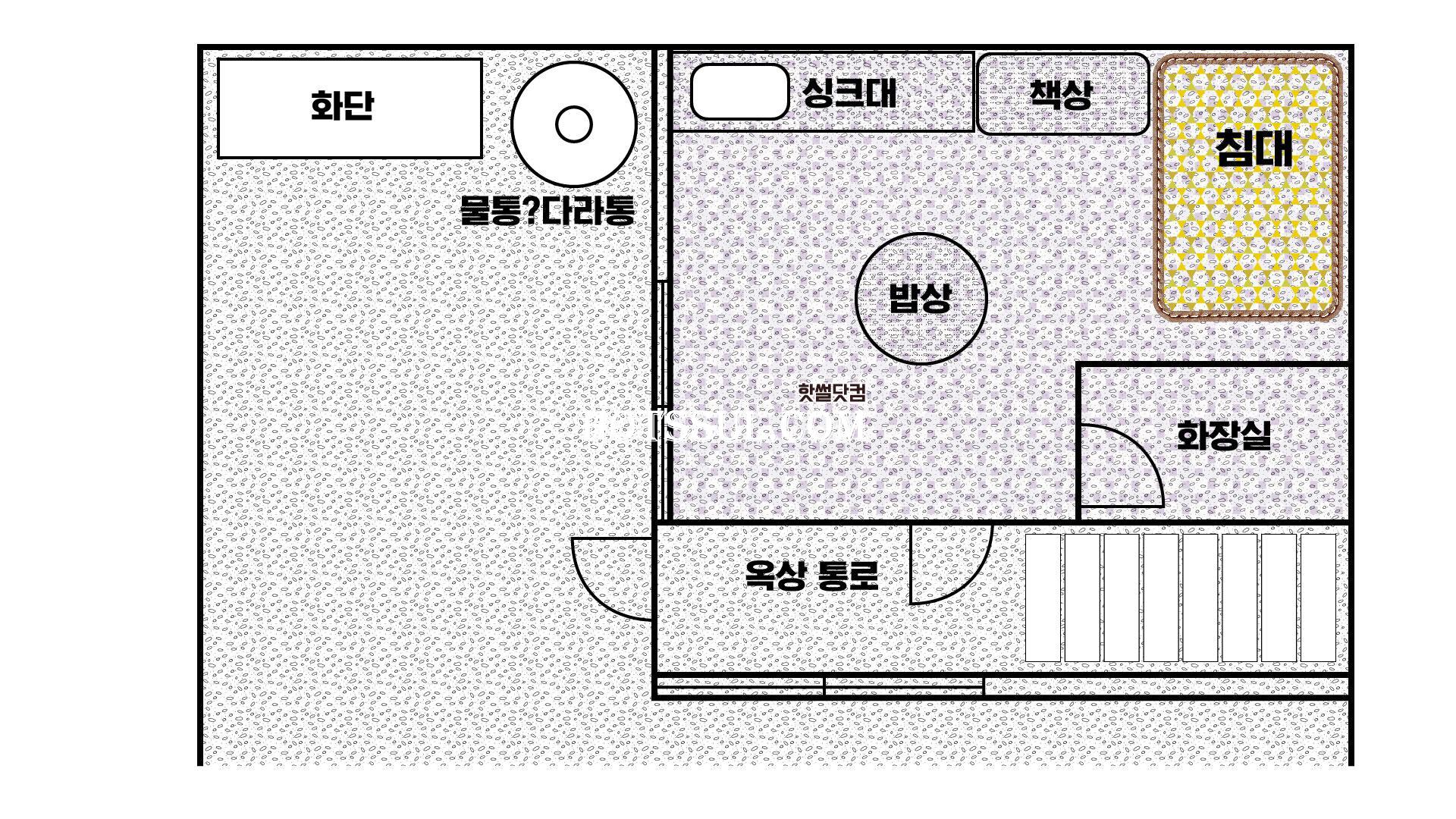 대충 복도 옆에있는 저런 방이 있는 구조였어.