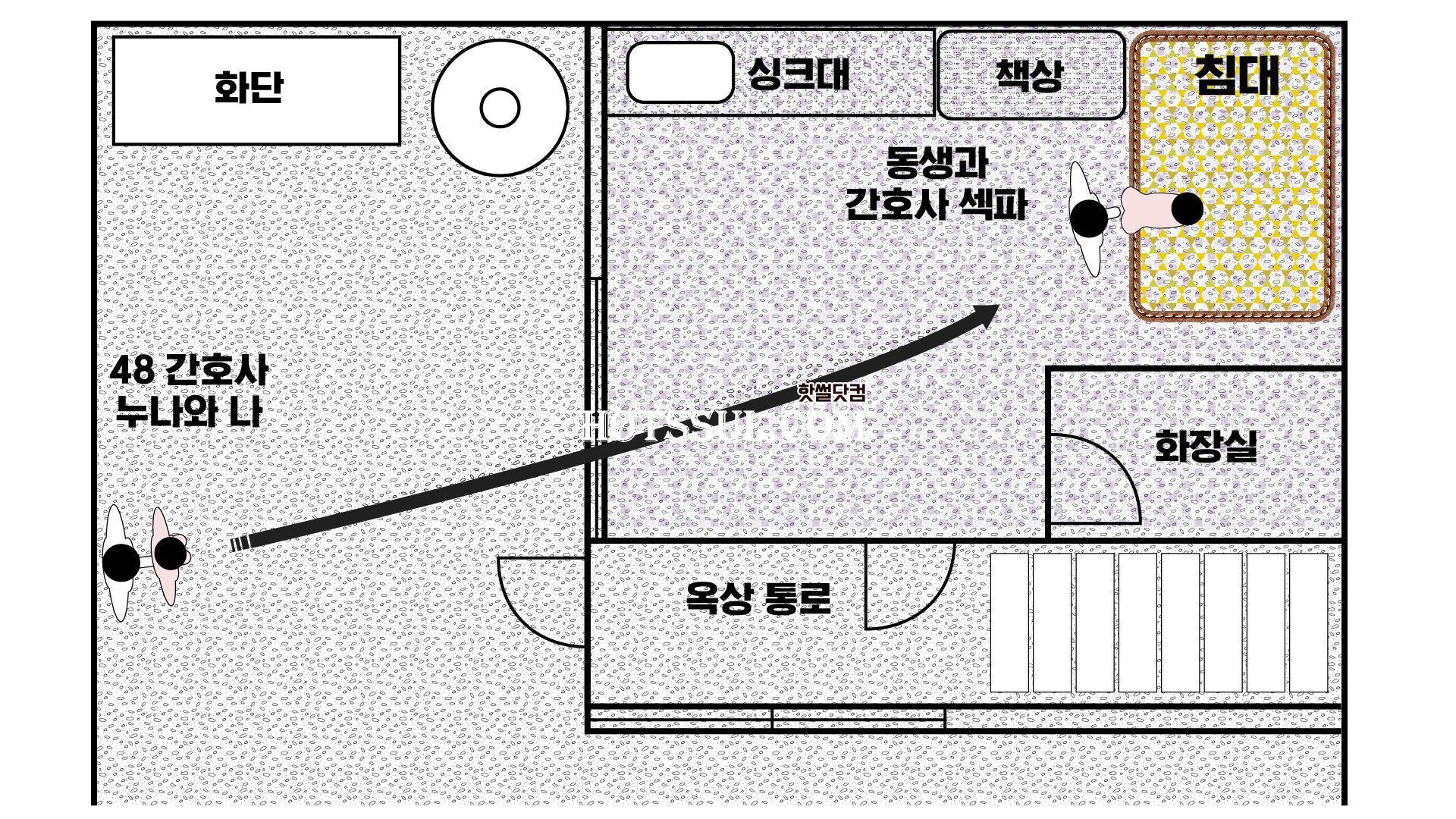 동생의 자X가 간호사 섹파의 엉덩이 사이로 들어가는 모습이었어...