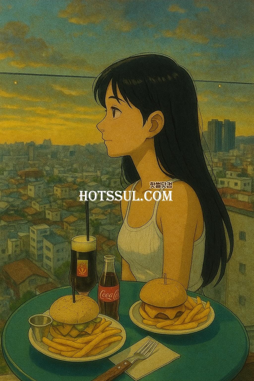 누나랑 일상의 연인처럼 햄버거 먹으며