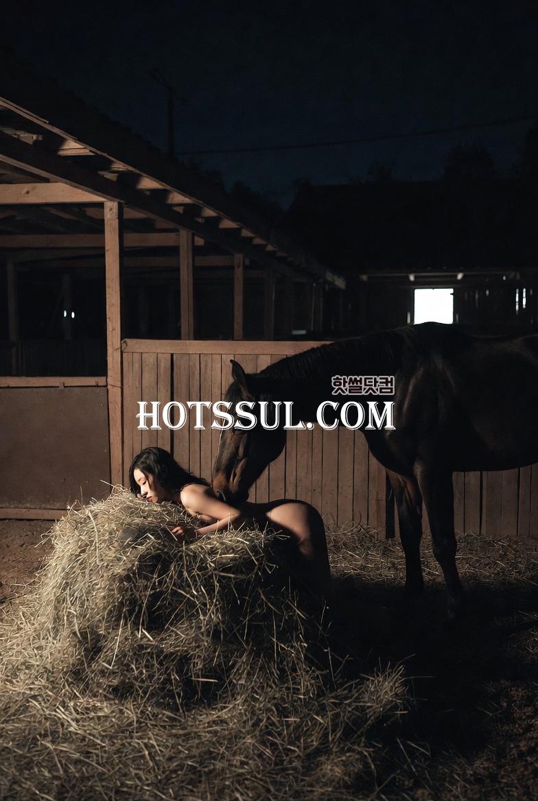 지은은 다시 막걸리를 한 잔 들이키고 마굿간으로 향했다. 얇은 원피스 한 장만 걸치고, 속옷은 아예 입지 않았다. 마굿간 문을 열자 번개가 고개를 돌려 그녀를 바라보았다. 어둠 속에서도 번개의 눈이 반짝였다.