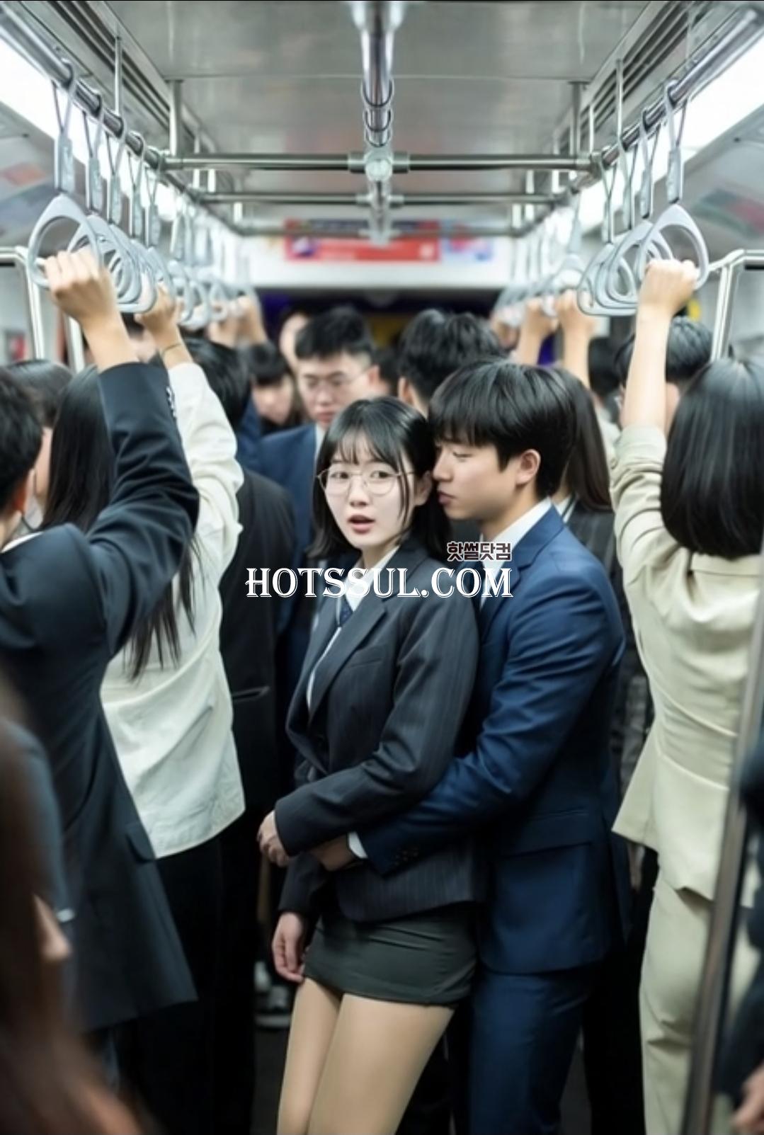 그런데 오늘은 뭔가 달랐다. 아침에 남편 준혁이 장난을 쳤다. "오늘은 특별하게 노팬티로 출근해봐. 재미있을 거야."라고 웃으며 속옷을 빼앗아 버린 거다. 민서는 처음엔 화를 냈지만, 준혁의 애교에 넘어가 결국 치마 아래 아무것도 입지 않은 채 집을 나섰다. 바람이 스치듯 시원한 느낌이 들었지만, 만원 지하철에 타니 불안감이 밀려왔다. 치마가 짧아서 조금만 움직여도 위험할 것 같았다.